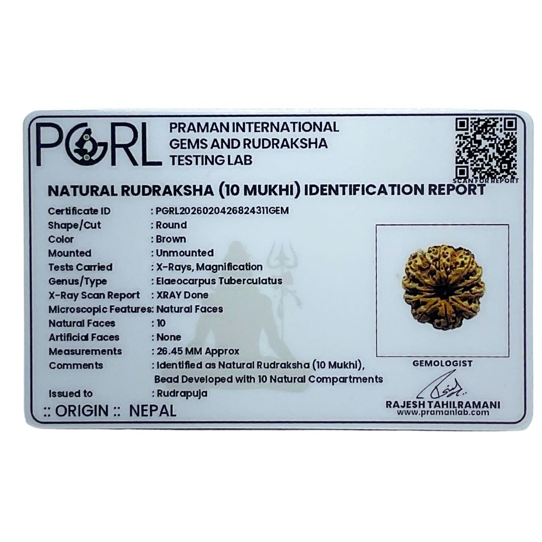 Ten Mukhi Rudraksha is blessed by Yamraj, the god of death, and the Dashdigpal, the controller and guardian of ten directions, and Dash Mahavidya (ten great learnings). It is good for mental peace and to remove all problems without any difficulty.
