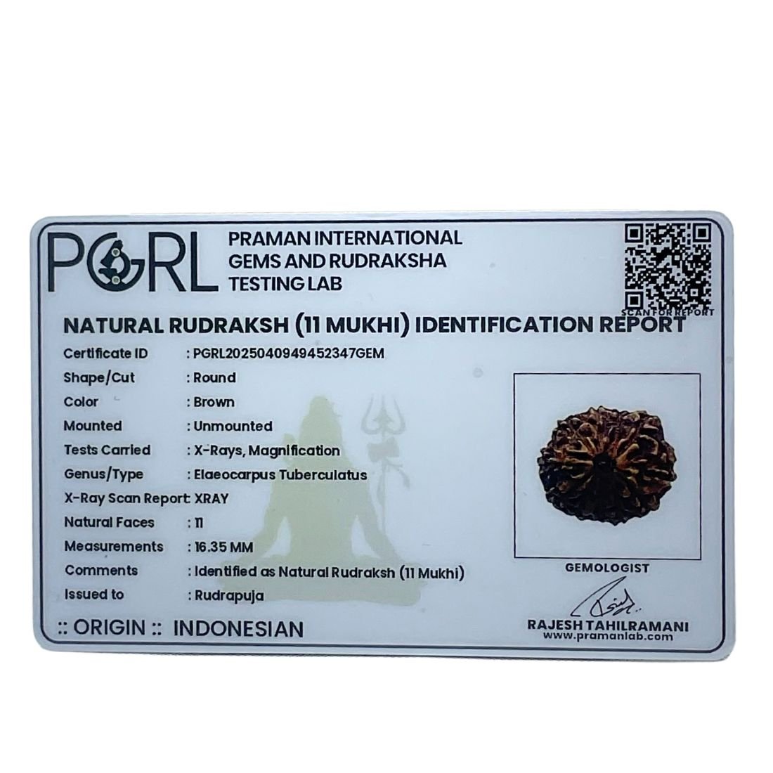 11 mukhi Indonesian rudraksha blessed by Shri Hanuman, Who called Ekadash Rudra.