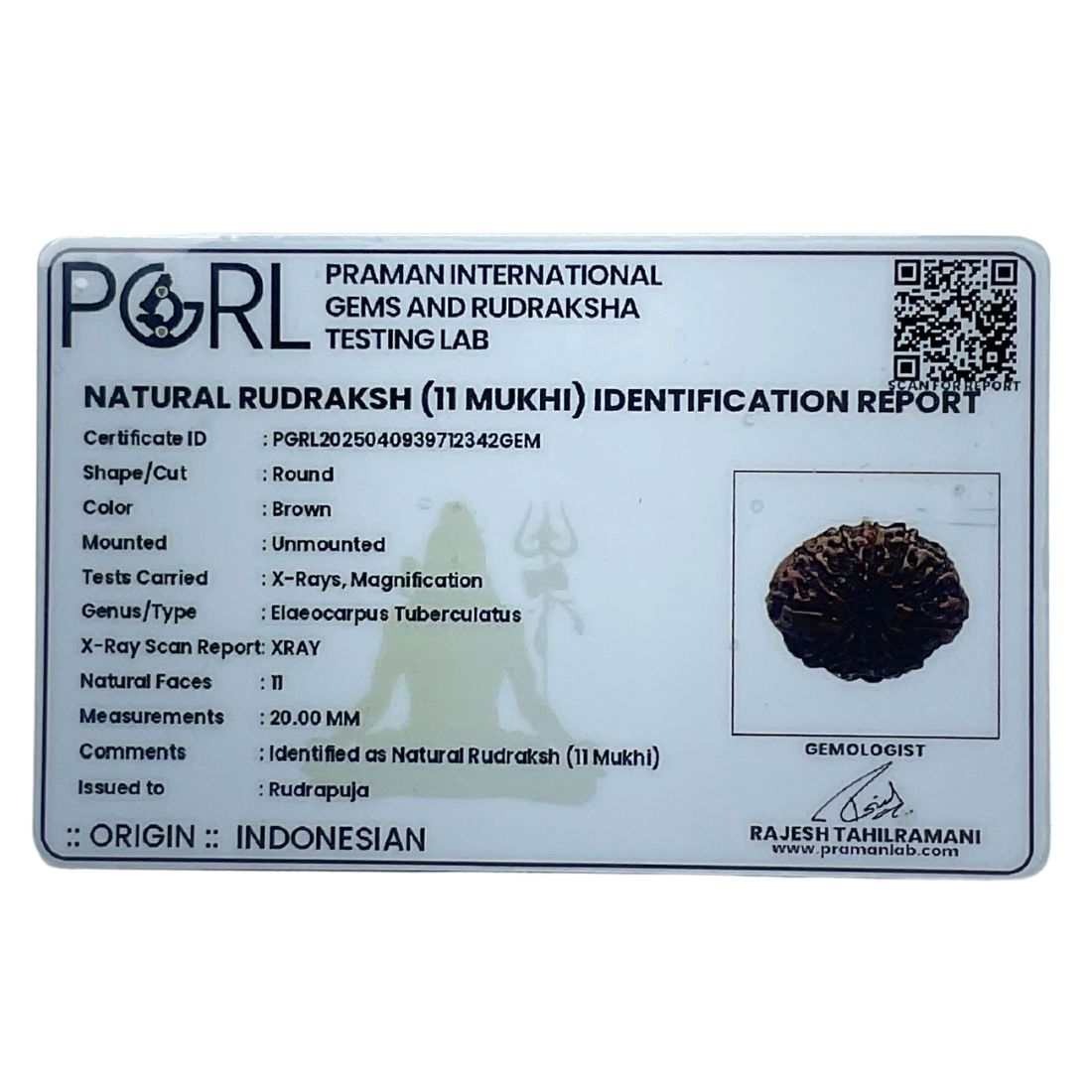 As per Padma Purana, the wearer of 11 mukhi rudraksha is known to be bestowed with the virtues of Shri Hanumanji, like oratorical and negotiation skills, self-confidence, intelligence, and physical and mental power.