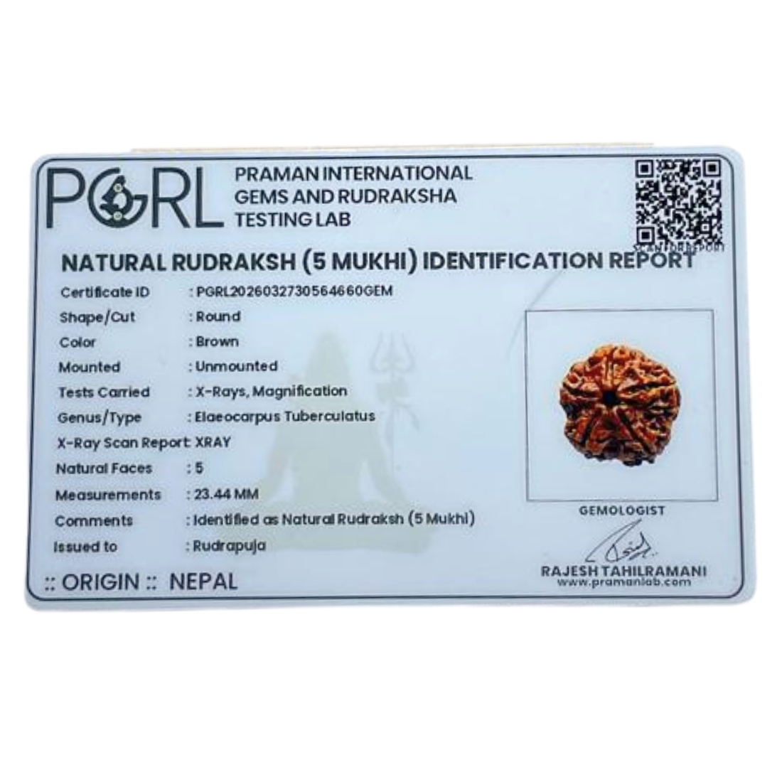 Collector 5 Mukhi Nepal Rudraksha – (23.44 MM) – (Rudrapuja)