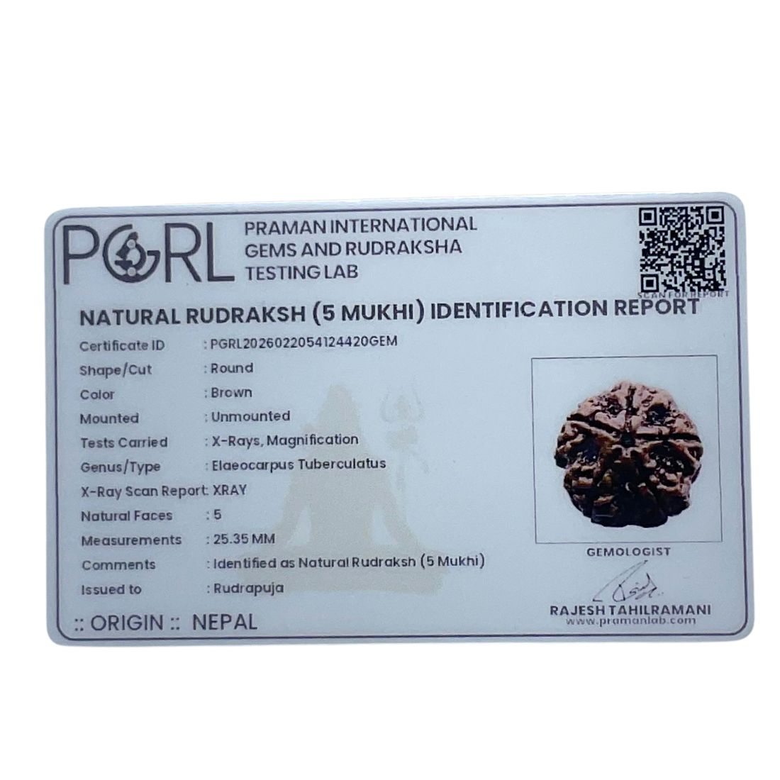 Collector 5 Mukhi Nepal Rudraksha - (25.35 MM) - (Rudrapuja)
