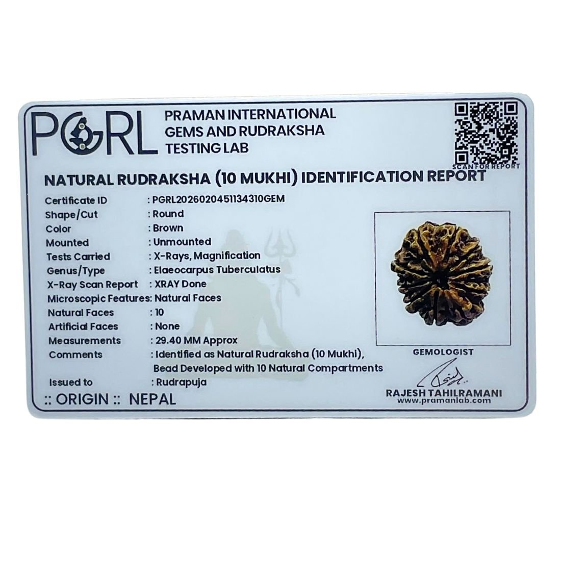 Collector 10 mukhi rudraksha bead is blessed by Yamraj, the god of death, and the Dashdigpal, the controller and guardian of ten directions, and Dash Mahavidya (ten great learnings). It is good for mental peace and removes all problems without any difficulty.