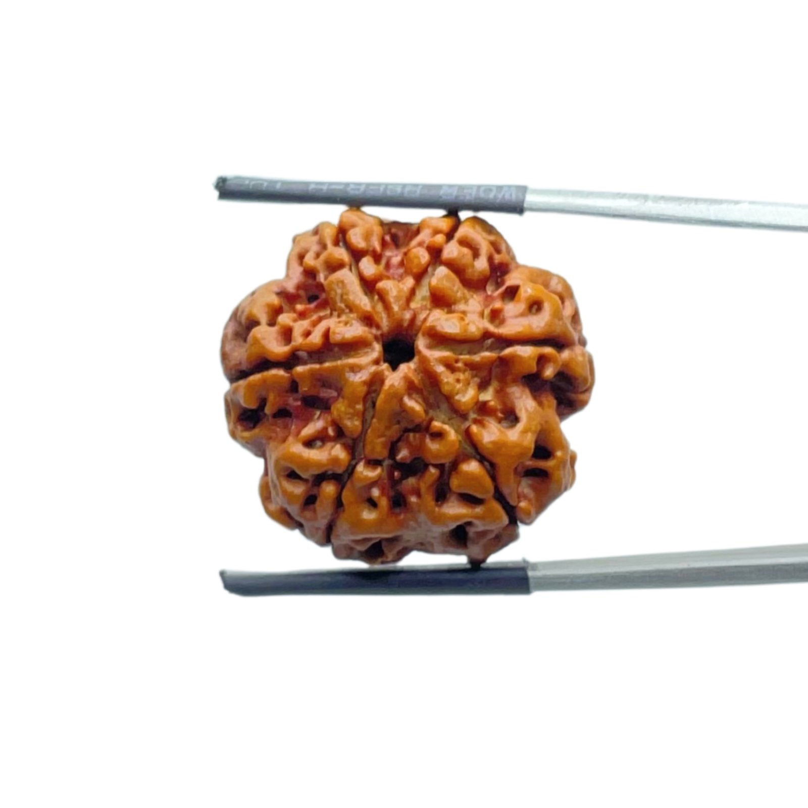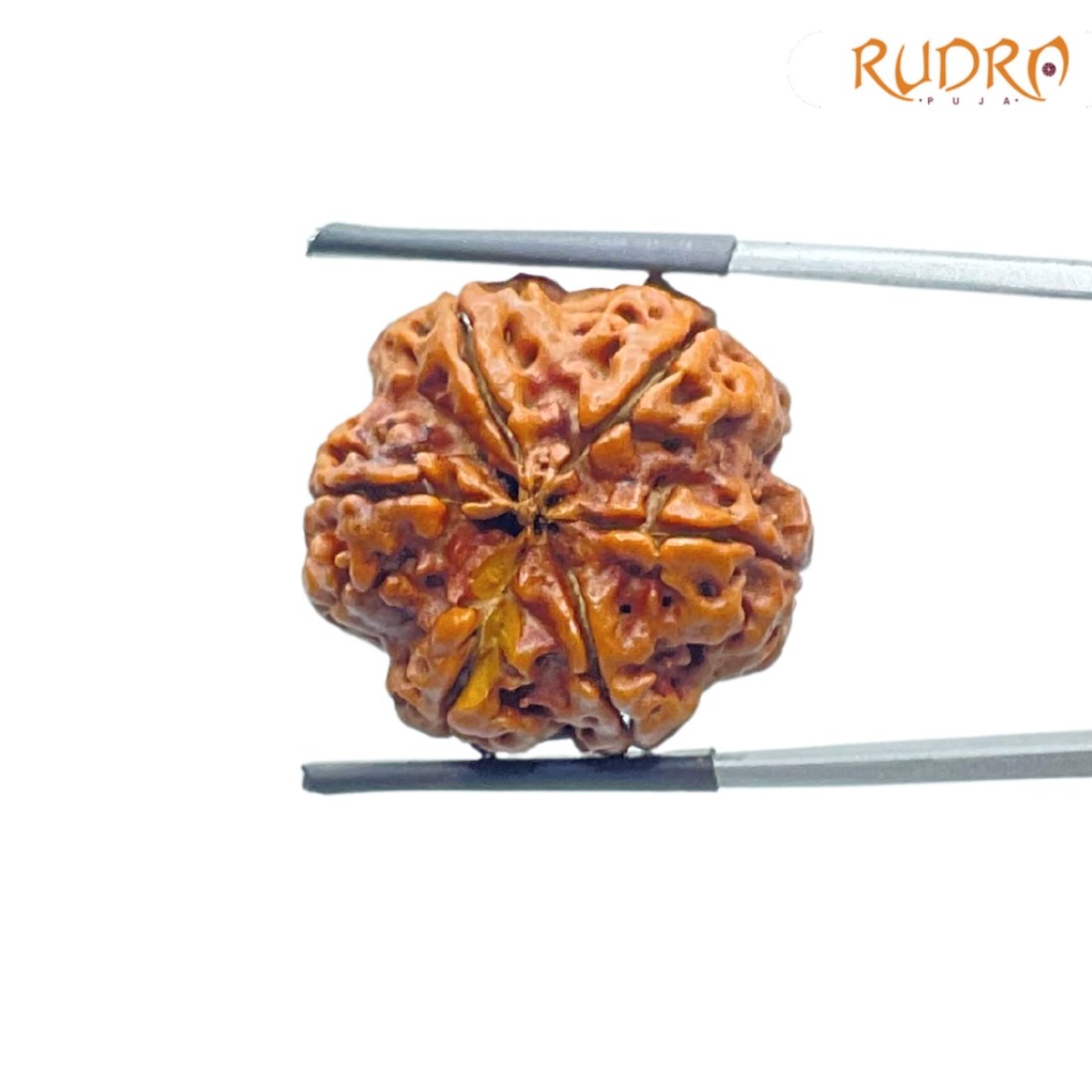 A 6 face rudraksha known as “shahastrarudra,” is believed to represent Lord Kartikeya and is associated with power, success, and leadership qualities. Each face or “mukh” is said to have its own significance, and the 6-faced rudraksha is particularly favored for enhancing communication skills and confidence.