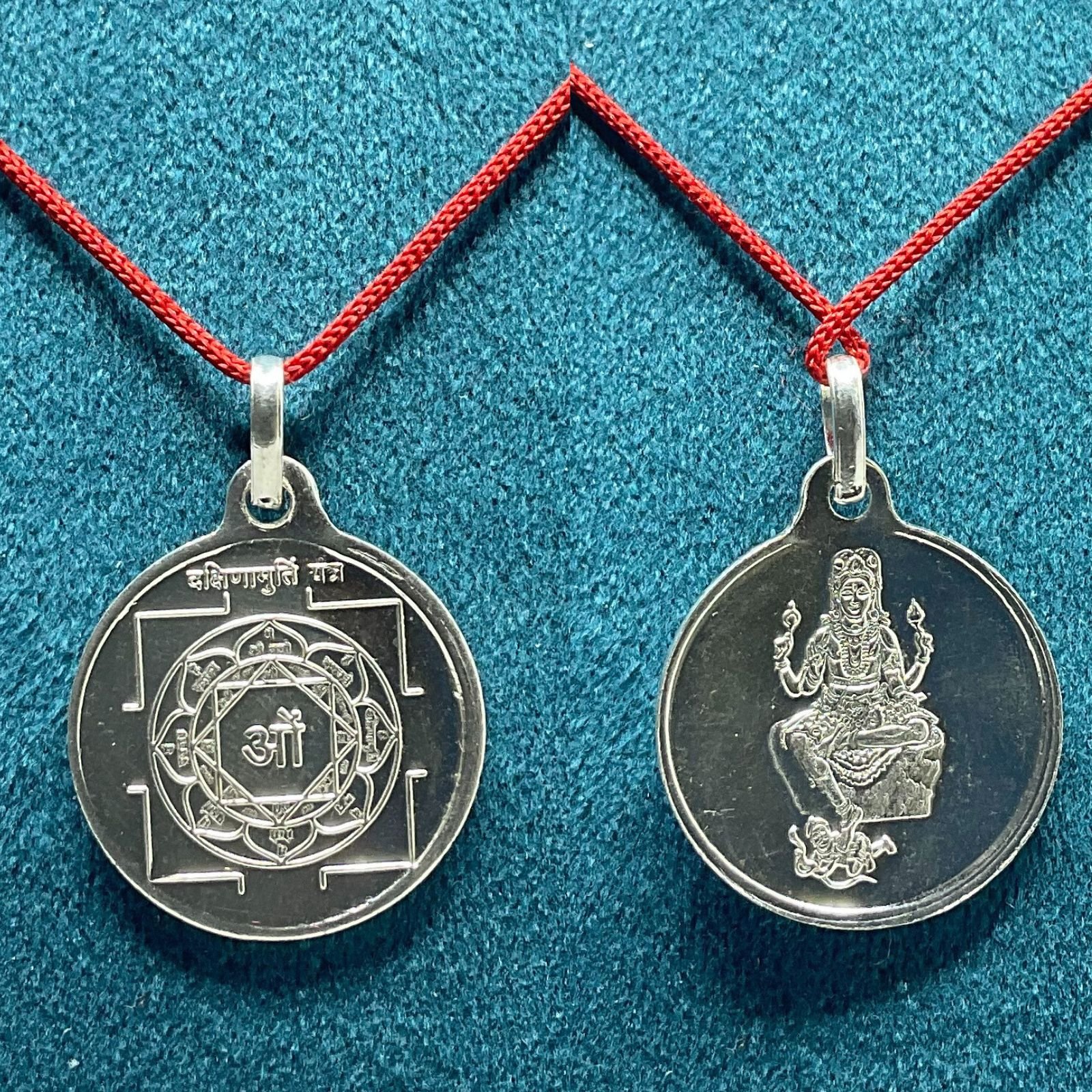 - Dakshinamurthy Yantra Silver Locket represents Lord Dakshinamurthy is the incarnation of Lord Shiva as The God of knowledge, wisdom, and education that blesses positive energy. The Yantra’s vibes deliverers the devotee from fears and blesses with positive energy with the zenith of success, determination, and self-confidence.