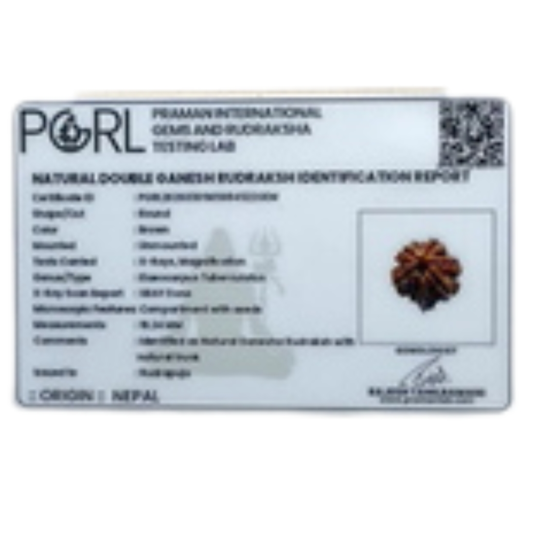 Double Ganesha Rudraksha (19.24 MM), energized by Rudrapuja, is a rare and powerful bead blessed with dual Ganesha energy. Ideal for removing obstacles, attracting prosperity, and enhancing wisdom and success.