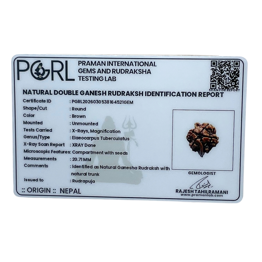 Double Ganesha Rudraksha (20.71 MM), energized by Rudrapuja, is a rare and powerful bead blessed with dual Ganesha energy. Ideal for removing obstacles, attracting prosperity, and enhancing wisdom and success.