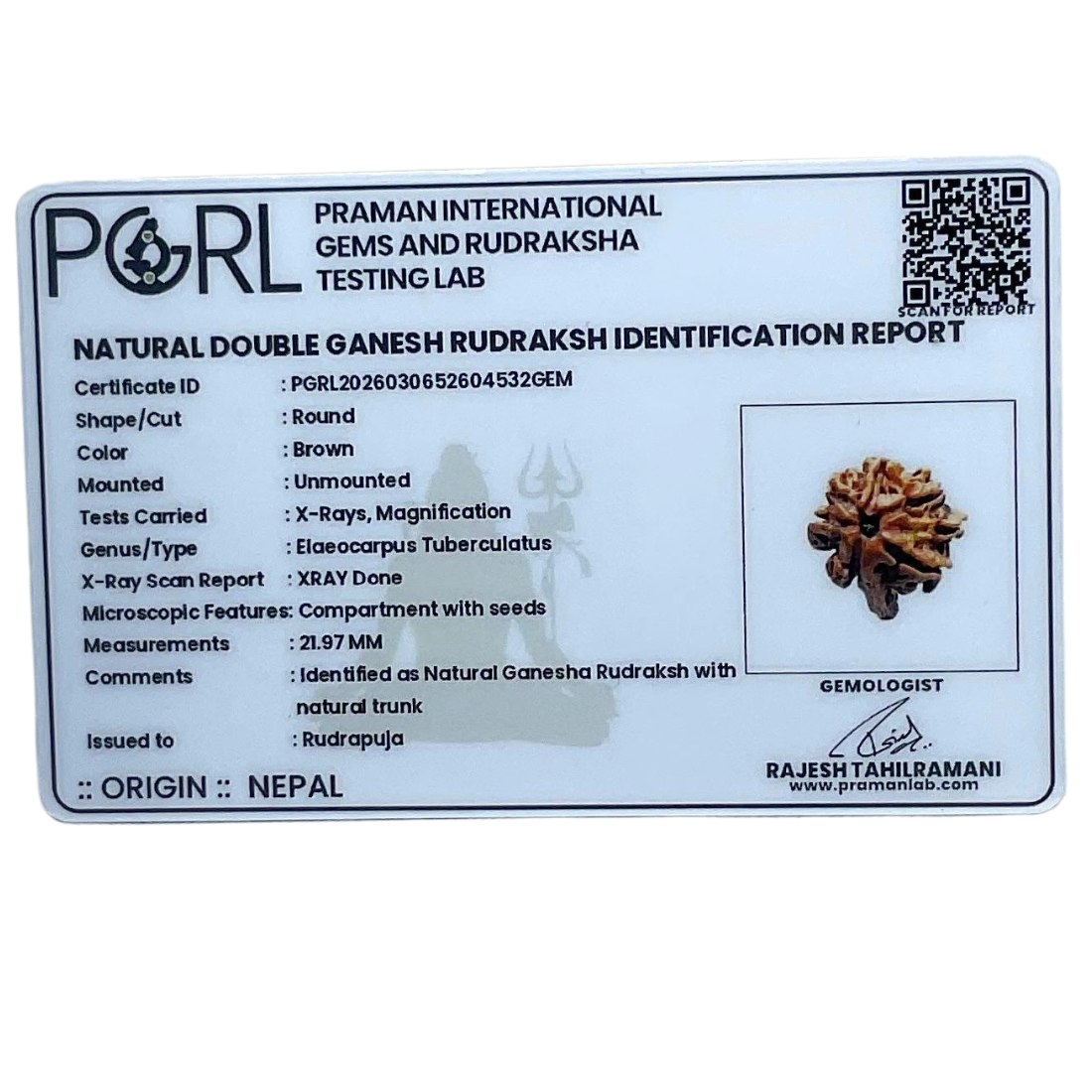 Double Ganesha Rudraksha (21.97 MM), energized by Rudrapuja, is a rare and powerful bead blessed with dual Ganesha energy. Ideal for removing obstacles, attracting prosperity, and enhancing wisdom and success.