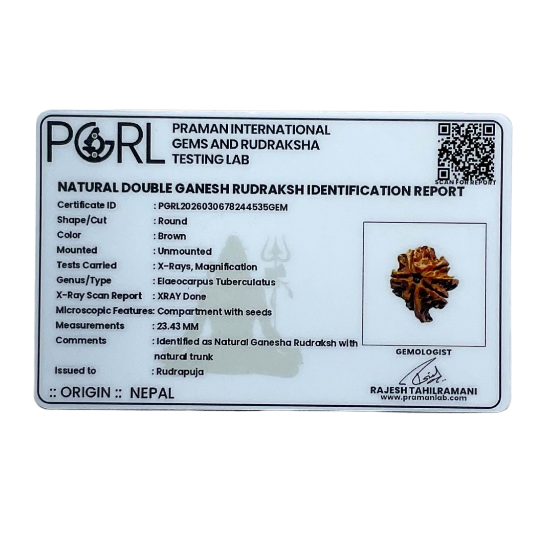 Double Ganesha Rudraksha (23.43 MM), energized by Rudrapuja, is a rare and powerful bead blessed with dual Ganesha energy. Ideal for removing obstacles, attracting prosperity, and enhancing wisdom and success.