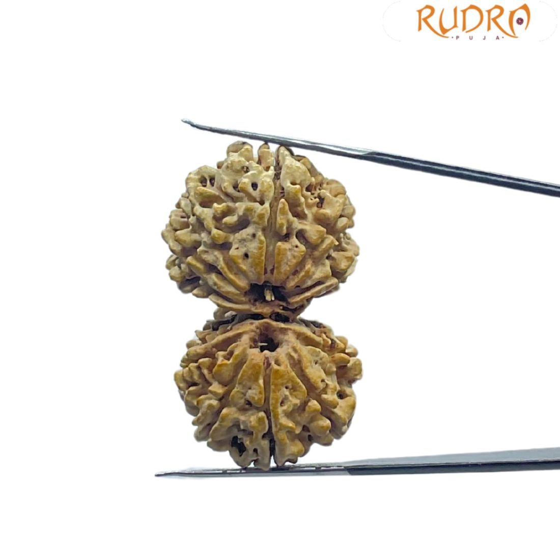 Gaurishankar Rudraksha is two naturally joined rudraksha. Its regarded as a unified form of Lord Shiva and Goddess Uma or Shakti, also called Ardhnareeshwar Rudraksha. It is known to possess the properties of two mukhi rudraksha.