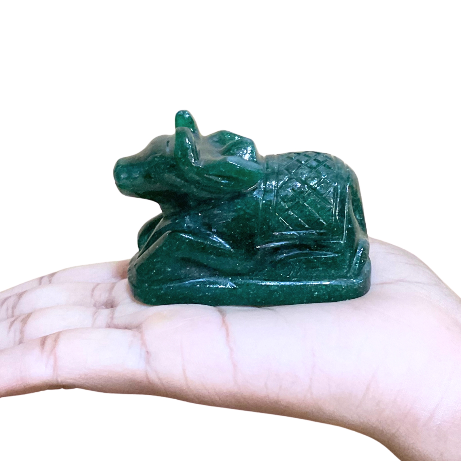 Green Jade Nandi, a representation of the sacred bull and a symbol of Lord Shiva, is often used in various cultures for its spiritual and healing properties.