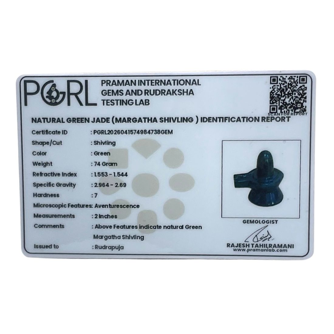 • Jade is known for its protective properties, and when in the form of a Shivling, it is believed to shield the devotee from negative energies, harm, or evil forces. It creates a protective aura around the person, promoting a sense of safety and tranquility.