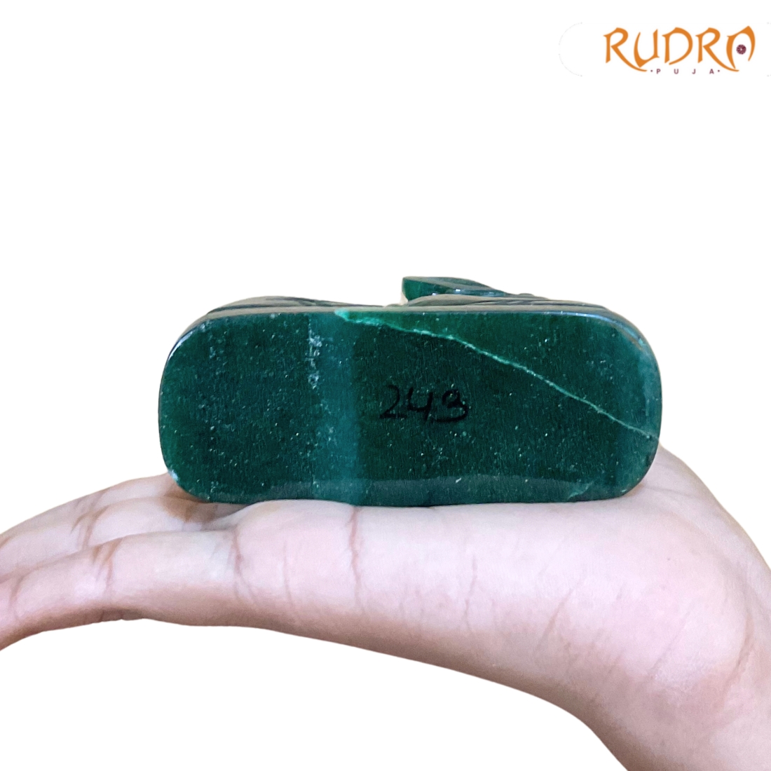 Jade, particularly green jade, is a gemstone that symbolizes purity, harmony, and balance. It’s often regarded as a protective stone and is believed to bring good luck and prosperity. When used to carve sacred figures like Nandi, jade also adds a spiritual significance, combining the protective and healing properties of the stone with the divine symbolism of Nandi.
