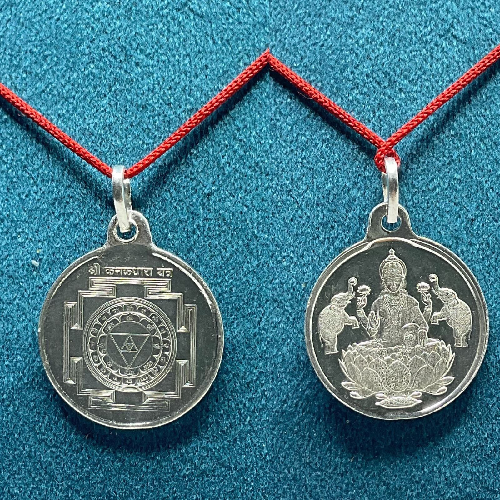 - And Devotee’s family and generates positivity and Blesses success, wealth, and prosperity. A great astronomical conveyor of energy with Kanakdhara Yantra silver locket and Goddess Laxmi on the other side. Made of consists of geometric patterns. It blesses the Devotee with good health, focus. Japa of mantra and Yantra can lead to concentration and peace of mind.