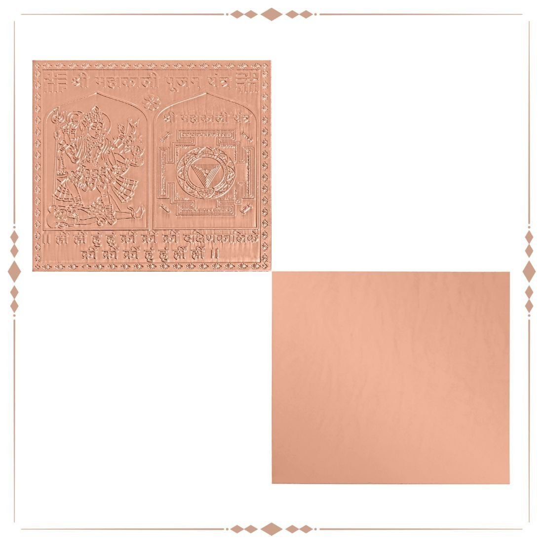 Bhadra Kali Yantra best yantra for the sadhak for fulfillment of all their desires, wealth, comforts of life and is used for sammohan or Vashikaran purposes. Maa Kali Yantra is very powerful and tested yantra. This Yantra has occult powers & its worship reverses the ill-effects of black magic and protects a person from the bad influences of spirits & ghosts.