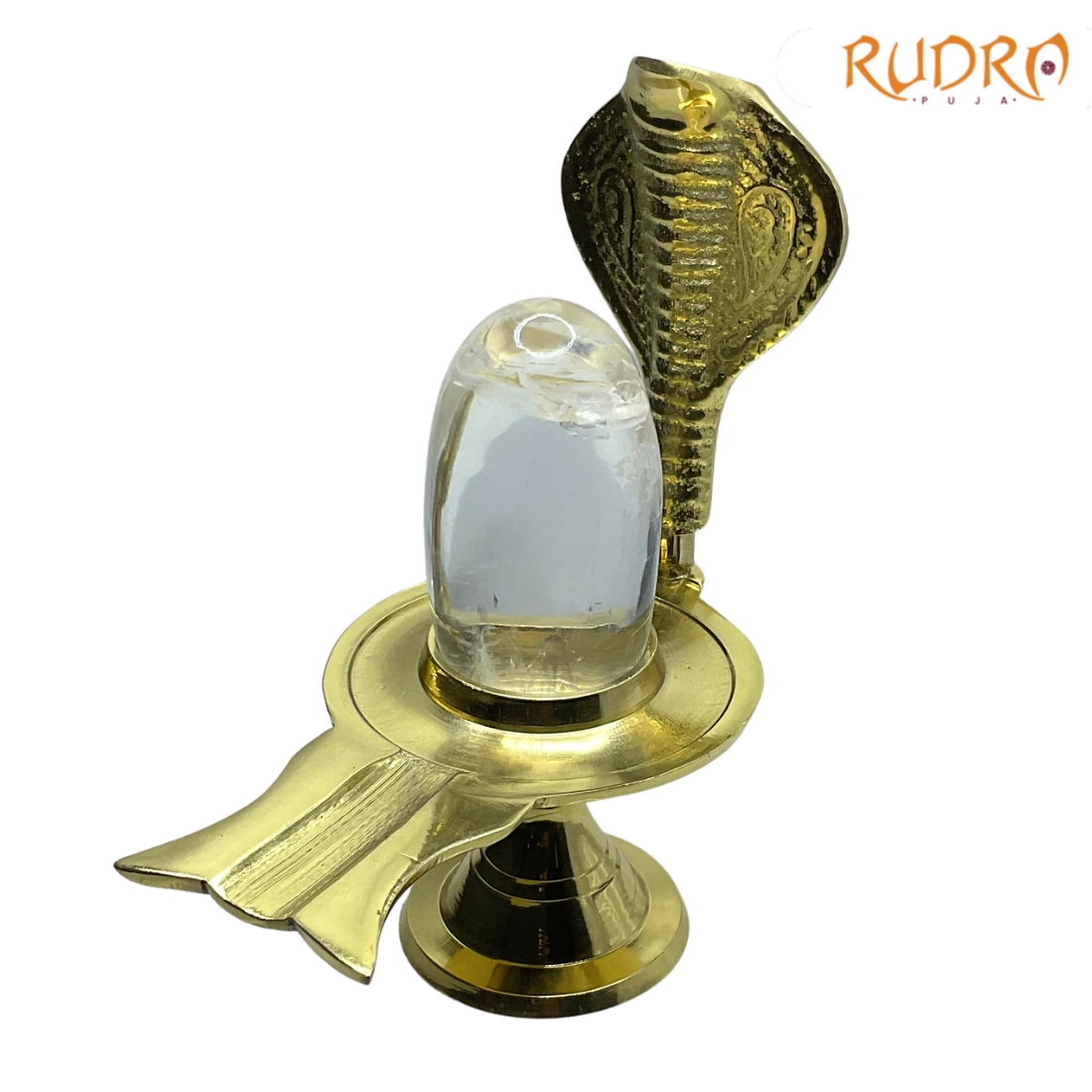 Sphatik lingam with stands in brass are popular form of Lingam for Home worship