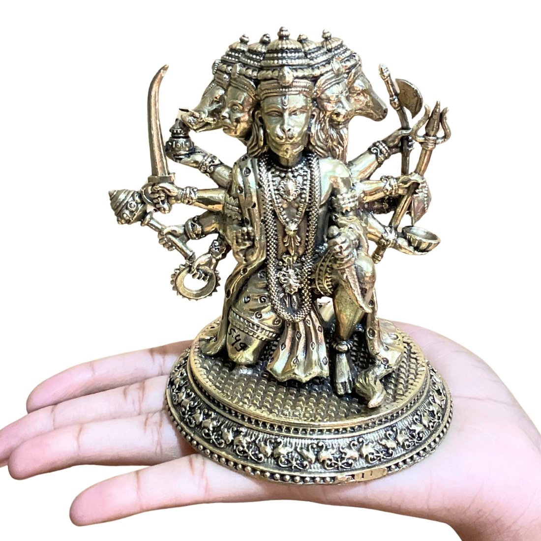 The worshipper of the Panchamukhi Hanuman Brass Statue form is liberated from different fears, negativity, and enemies. Hanuman is often referred to as a yogi. He is believed to have reached perfection in his siddhis and had gained control over his five senses (Pancha Indriyas). This is one of the many interpretations of the number five. Amongst other versions, the famous Tamil poet Kambar has shared the importance of the number five in Ramavataram, the Tamil version of Ramayana.