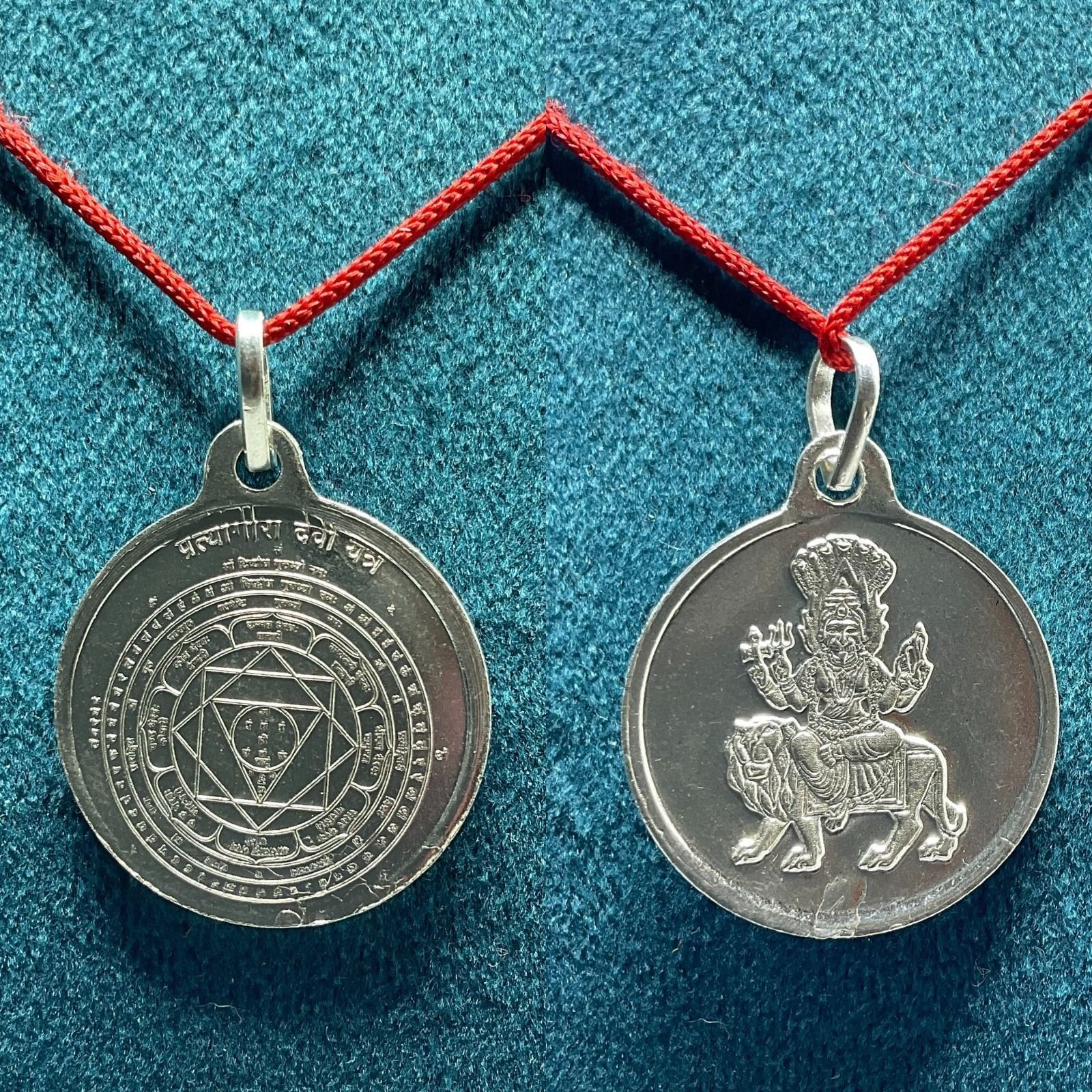- When Negative forces come into your life, Pratyangira Devi will come to your rescue. As such, Locket Yantra is the protector against evil forces and blesses you with pure thoughts and peace.