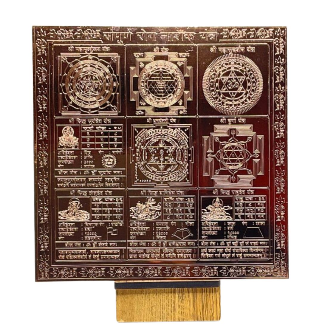 Rog Nashak Yantra is a great astronomical conveyor of energy, an aerial of Nature, a powerful medium for peace, victory, achievement. The soul and mind focus at the center of the Yantra to reach more essential levels of divinity. Rog Nashak Yantra is made of pure copper and consists of geometric patterns. It is precisely made in a thick and pure copper sheet. Magical numbers maths combination and chant mantra. It blesses the devotee with good health, protection, and the blessings of Deities.