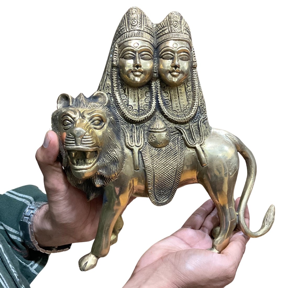 पीतल की मूर्ति में एक दिव्य स्वर्णिम आभा होती है, जो पूजा स्थल को भव्यता प्रदान करती है। पीतल की लचक के कारण शिल्पकार देवी के अनेक हाथों, आयुधों और उनके उग्र-संरक्षक भावों को अत्यंत सूक्ष्मता से उकेर पाते हैं। यह भारतीय पारंपरिक कला की एक उत्कृष्ट कृति होती है।