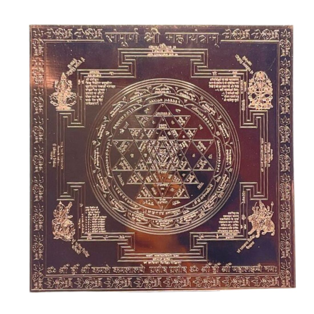 - A combination of these nine triangles makes Shri yantra the most dynamic of all yantras. For the purpose of Worship, a Shree yantra is engraved on copper, silver, and gold plates as a flat line drawing, or sculpted from stone and precious gems (quartz, Crystals, etc.).