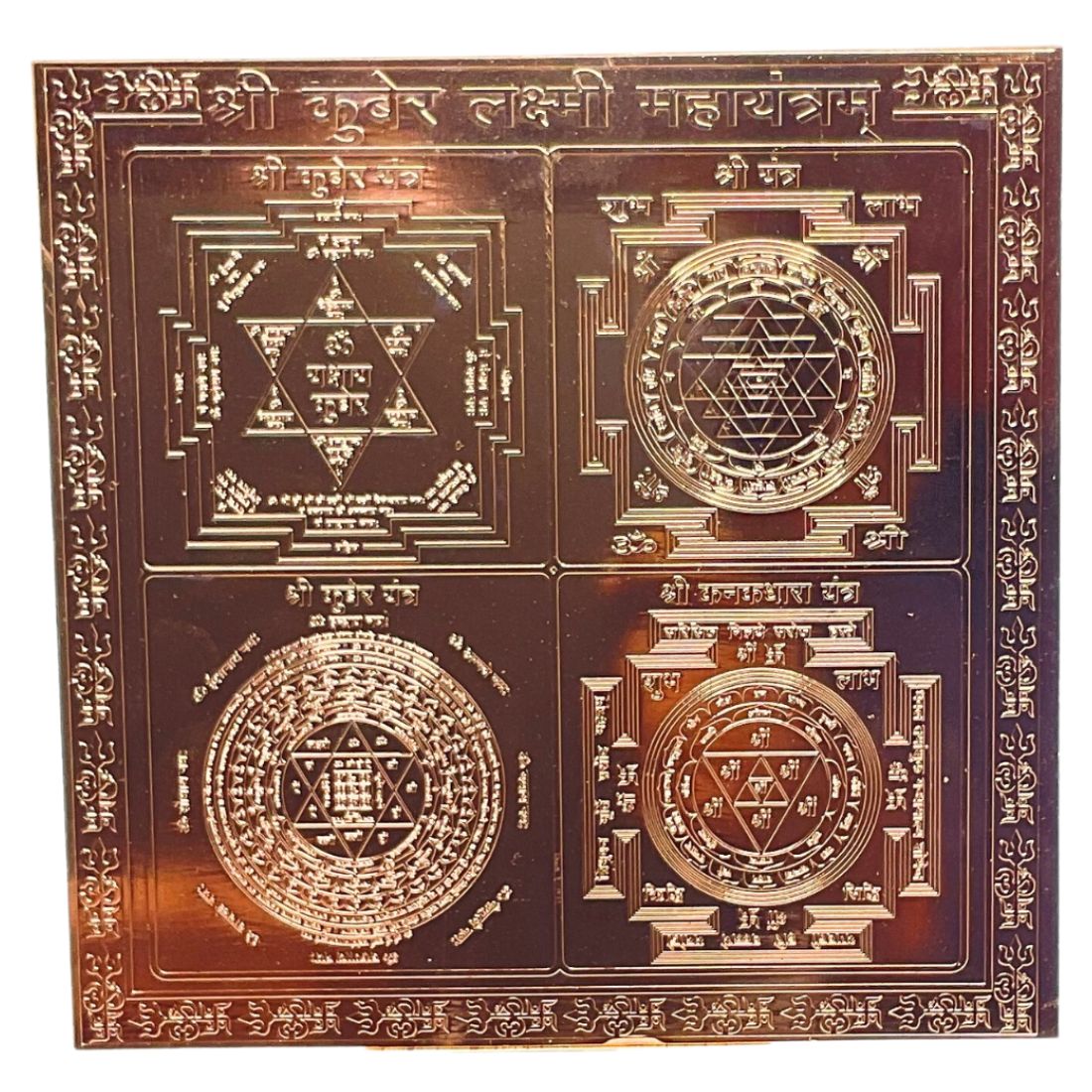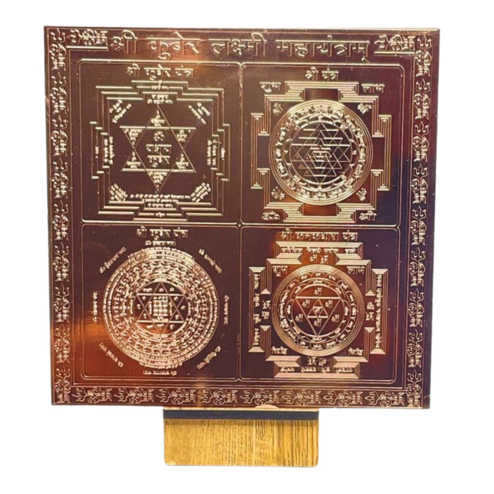 Sampurna Kuber Laxmi Mahayantra, a powerful union for blessings of Lord Kuberthe Accountant of Heaven and Goddess Laxmi Deity of Wealth. With their four auspicious yantras 1. Maha Kuber Yantra, 2. Shree Yantra, 3. Kanakdhara Yantra, 3. Kuber Yantra blesses wealth, success, prosperity. It helps to recover troubles financially and removes all problems, obstacles coming in the way of devotee’s progress.