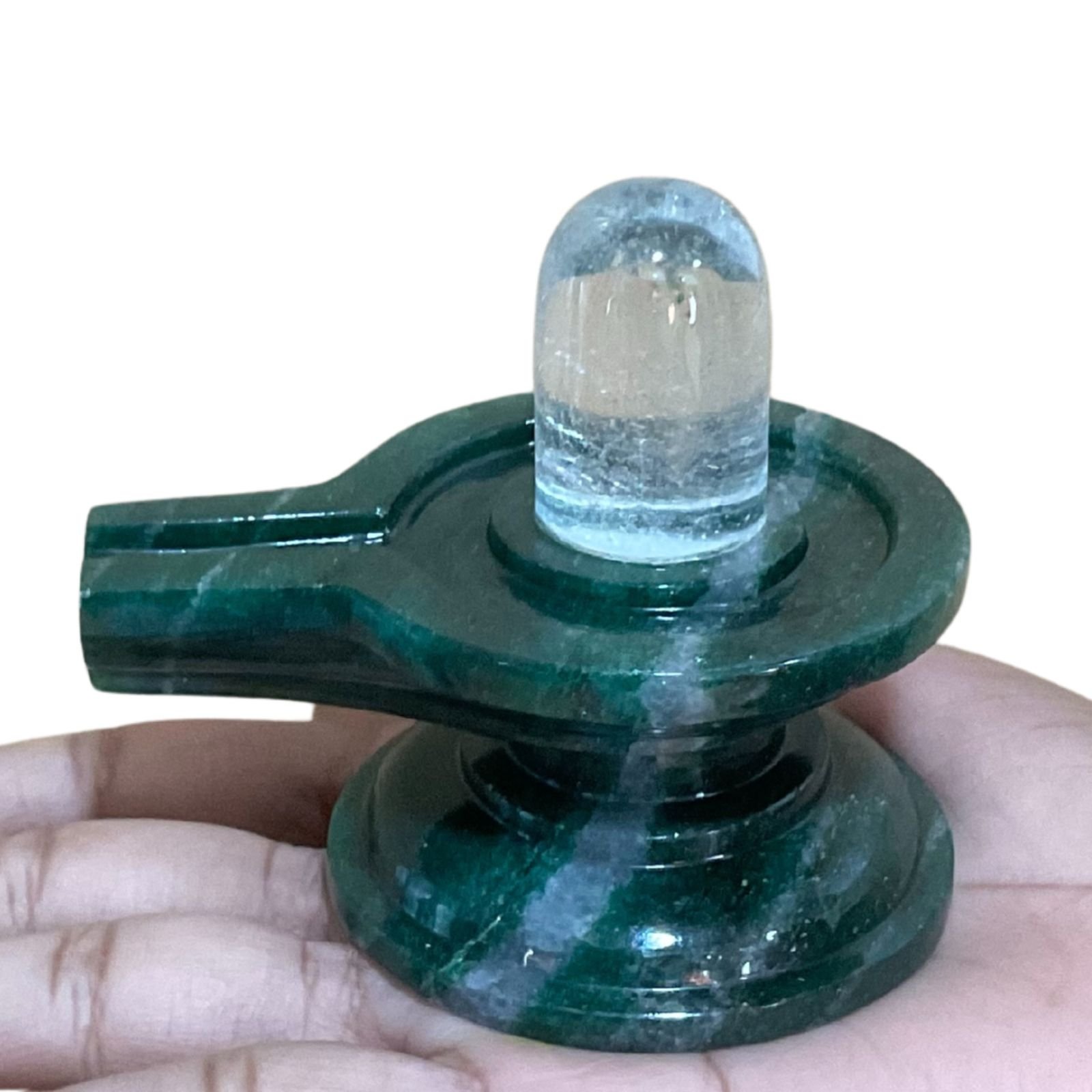 The Sphatik Lingam with a Green Jade Base combines the unique properties of both crystals—Sphatik (Quartz) and Green Jade—to offer various spiritual, mental, and physical benefits. Here are the benefits of each component, along with the overall advantages of this combination:
