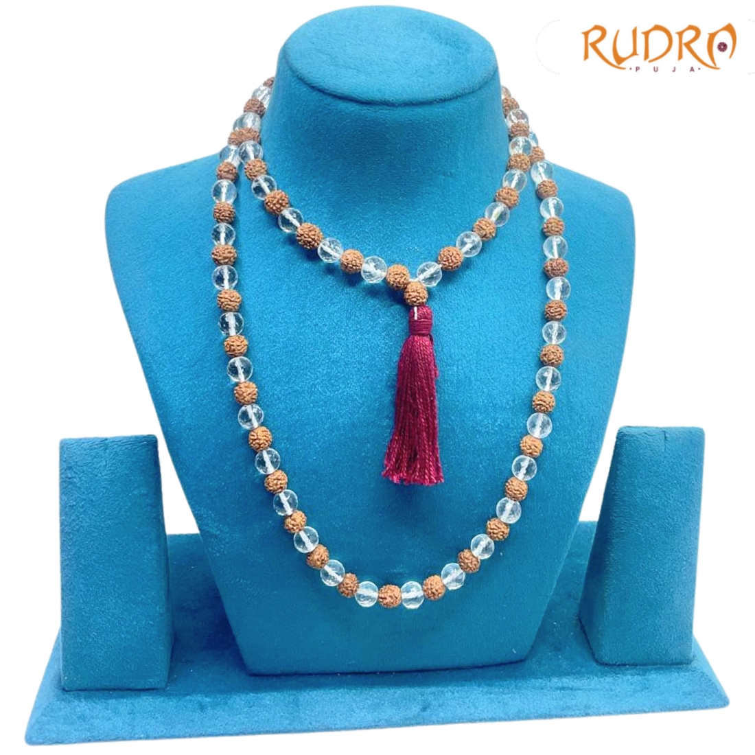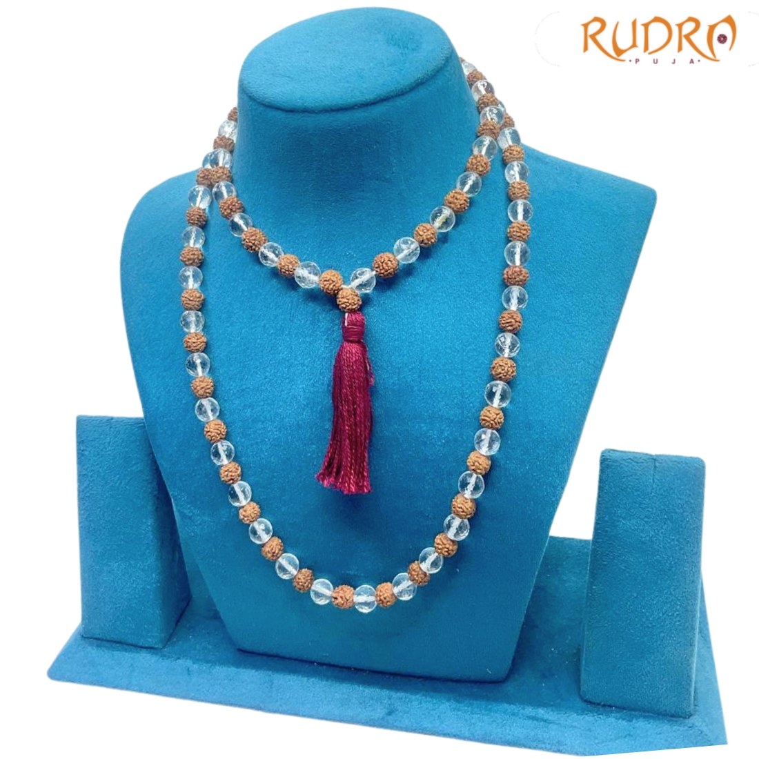 Combining Sphatik and Rudraksha beads in a mala is thought to enhance the spiritual energy of the beads and facilitate deeper meditation, concentration, and spiritual growth.